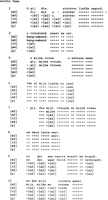 Beispiel eines Vergleichsprotokolls von sechs Fassungen eines Textes, Quelle: www.dbnl.org